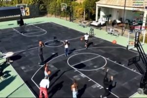 詹姆斯也在直播中打趣吐槽:“我觉得篮筐有点歪(I think the rim’s crooked for sure)。”